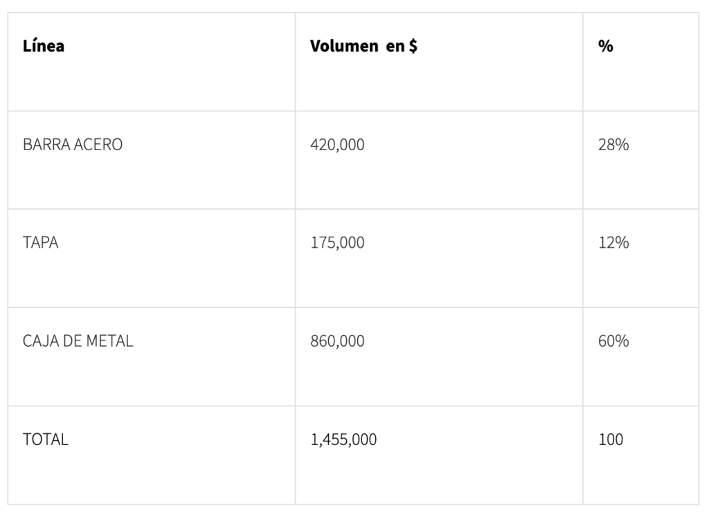 En este caso el volumen en $ se calcula con base en el costo de las operaciones de venta acumuladas en un período de tiempo que se toma como base. La clasificación ordenada queda así: